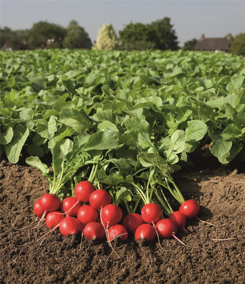 Редис "Рудольф" F1 - это ультраскороспелый, универсальный гибрид с округлыми, ярко-красными корнеплодами. Он известен своей высокой урожайностью, хорошей всхожестью и устойчивостью к цветушности и растрескиванию. Мякоть у него белая, сочная, хрустящая, слабоострая и без горечи, отлично подходит для употребления в свежем виде.