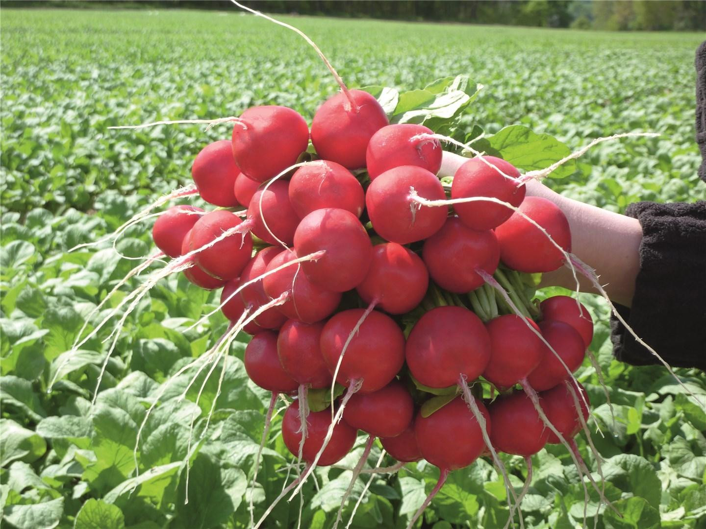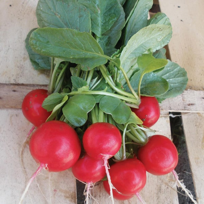 Редис "Розетта" F1 - это популярный среднеранний гибрид с периодом созревания 25 - 30 дней, который ценится за яркие красные корнеплоды округлой формы без пустот, устойчивость к растрескиванию, болезням и стрелкованию, а также за высокие товарные качества и возможность выращивания в разные сезоны в открытом грунте и теплицах. Он идеален для пучковой продажи, мойки и фасовки.