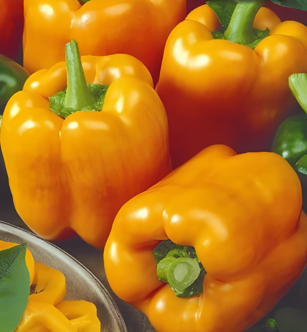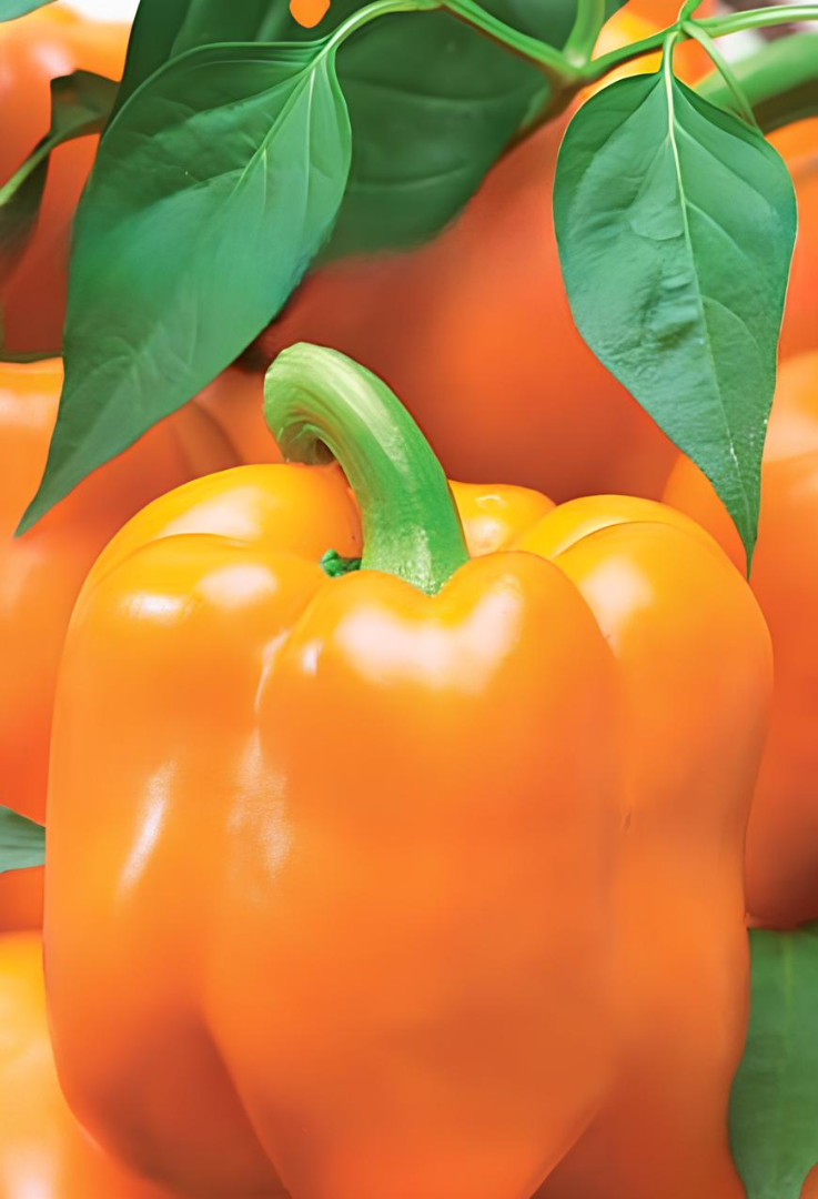 Перец сладкий "Спритз" F1 имеет блочно-оранжевый плод с 3 - 4 долями, средней массой 220 - 230г, размер плода 7х9см.