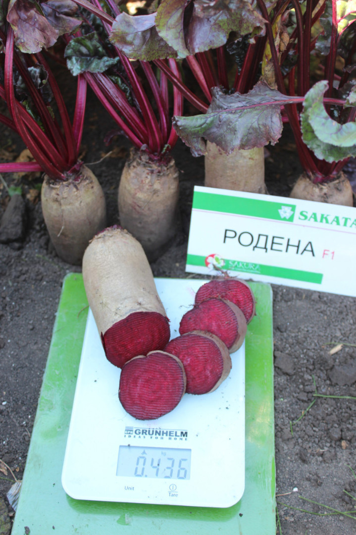 Свекла "Родена" F1 - среднепоздний высокоурожайный гибрид с тёмно-красными цилиндрическими корнеплодами весом 250 - 280г. Отличается сладким вкусом (8 - 10% сахара), отсутствием радиальных колец, устойчивостью к болезням и стрелкованию. Идеальна для переработки, вакуумирования и длительного хранения.