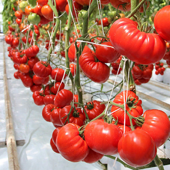 Томат "Сарра" F1 - это ранний (60 - 65 дней), высокоурожайный (до 22кг) индетерминантный гибрид, типа "Воловье сердце". Крупноплодный (350 - 600г), мясистый, насыщенно-красный, с характерным "носиком", очень сладкий. Устойчив к стрессам (холод, жара) и болезням. Подходит для теплиц и открытого грунта с подвязкой.
