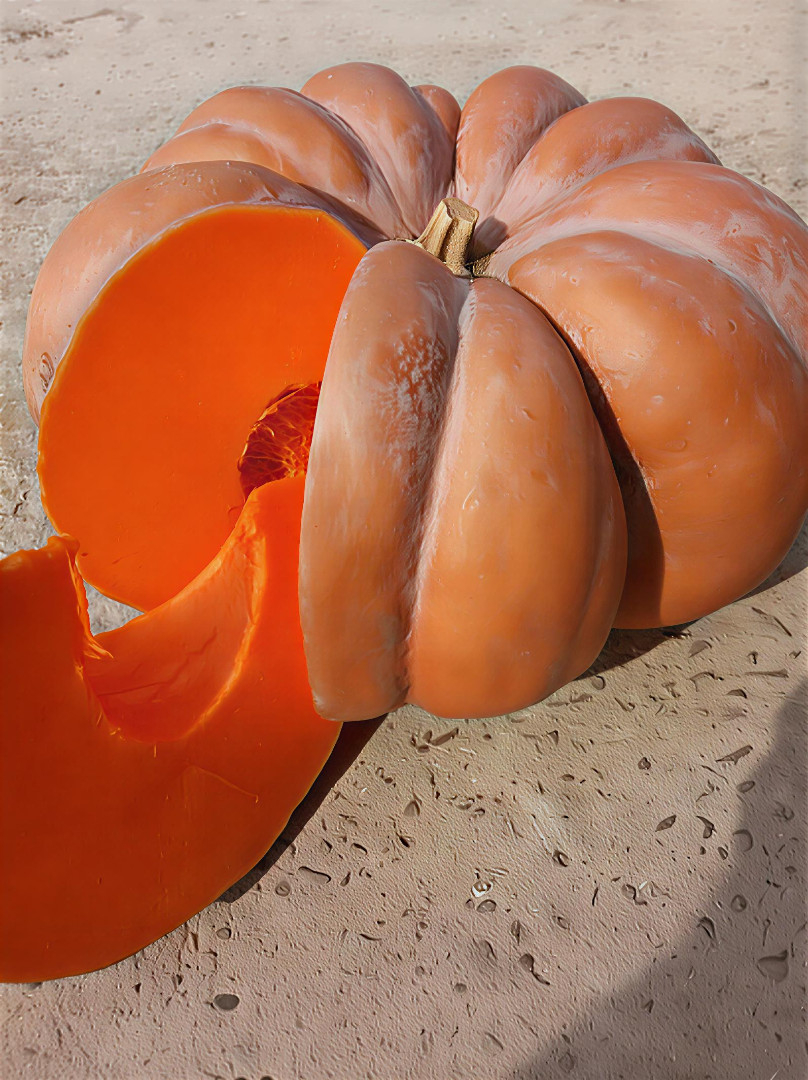 Плоды: Крупные (6-10 кг), округло-приплюснутые, с выраженными сегментами (ребрами).